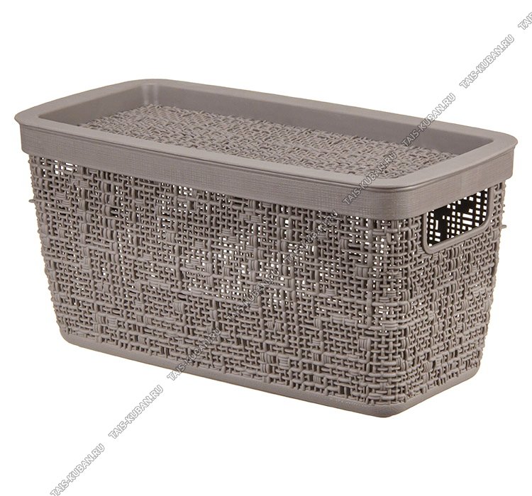 Корзина "Рогожка" серо-коричн,с крышк,прям 4,0л (28х14 h14см) выруб.руч.(12)