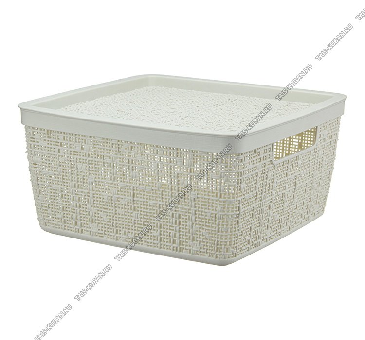 Корзина "Рогожка" бел.ротанг,с крышк 8,0л (28х28 h14см) (10)