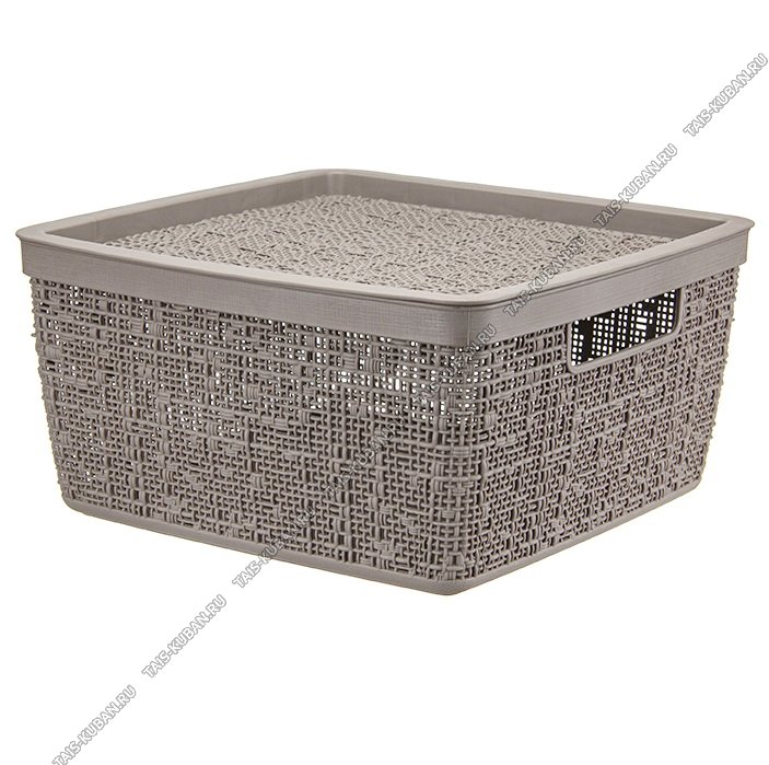 Корзина "Рогожка" серо-коричн,с крышк,квадр 8,0л (28х28 h14см) выруб.руч.(10)