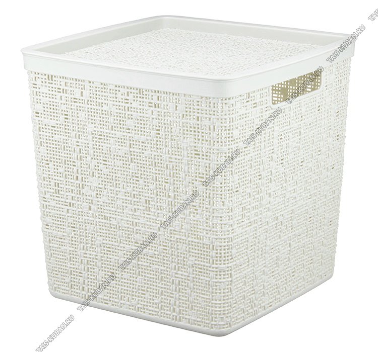 Корзина "Рогожка" бел.ротанг,с крышк, квадр 17л (28х28 h28см) выруб.руч. (8)
