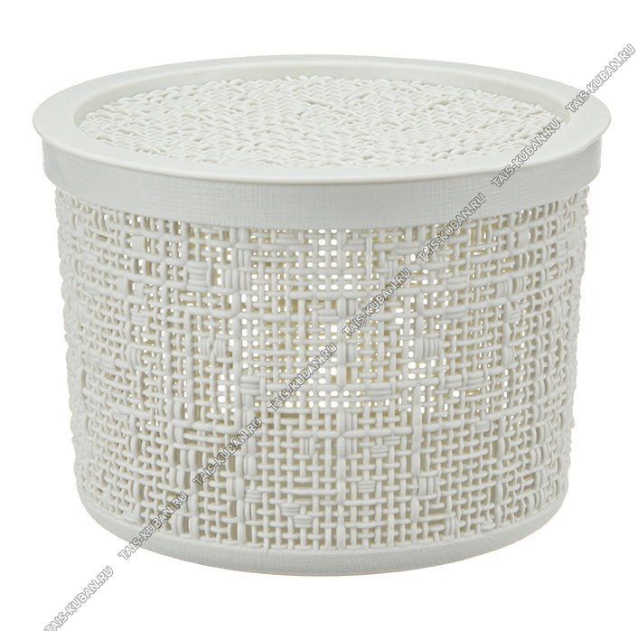 Корзина "Рогожка" бел.ротанг,с крышк 4,5л (d22 h16см) (8)