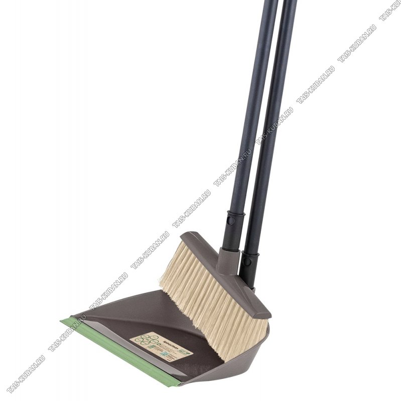 Набор Совок мягк.кром 24х16см +Щётка L20см,ворс 7см,вертикал.ручка h79см,серо-коричн, Svip (14)