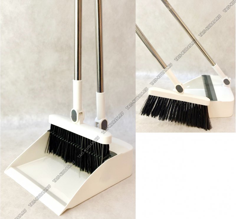 Набор Совок-бокс 25х23,5см с зубчат.наклад.д/очист+Щётка с регулир.наклон L22см,ворс 8см,складн.совок,вертикал.ручка h84см,белый (12)