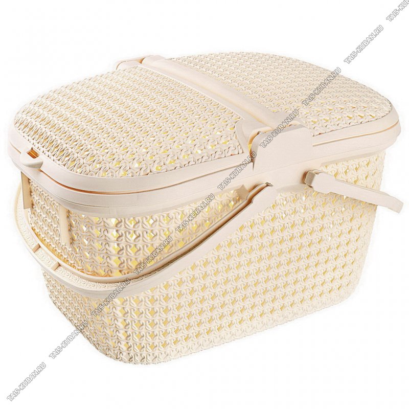 Корзина д/пикника,овал 25л молочн (46х34 h27см) с руч,2-х стор.открыт,на защ (6)