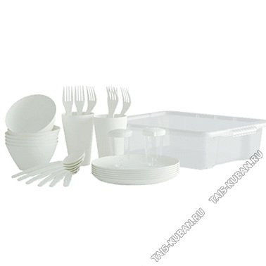 Набор д/пикника 6перс. 33пр,жемчужн "Беросси" (контейнер 8л,стакан 6шт 0,3л,тар.6шт,вил.6шт,лож.6шт,салат.6шт,солонка+перечница) (10)