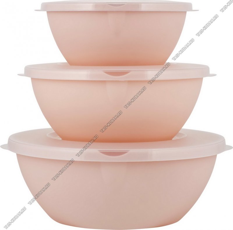 Миска с крышк, Н-Р 3шт,персик, кругл 2+3+5л (10) Миска с крышк, Н-Р 3шт,персик, кругл 2+3+5л (10)