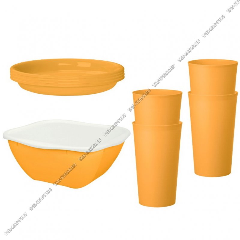 Набор для пикника 4 персоны 9предметов желтый (стакан 0,4л 4шт,тарелка 4шт,салатник с крышкой 4,5л) (6)