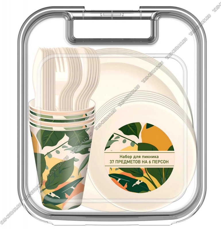 Набор д/пикника 6 перс. 37пр, бежев "Листья" (стак 6шт 0,3л,мис 6шт 0,55л,тар.6шт,вил 6шт,лож 6шт,нож 6шт) контейнер, Homver (4)