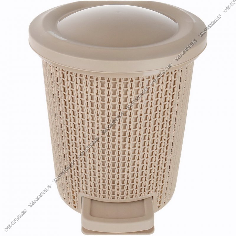 Ведро д/мусора с педал 6л "Плетение" кофе,круг (d24,5 h27см) внутр.съем.ведро (2)