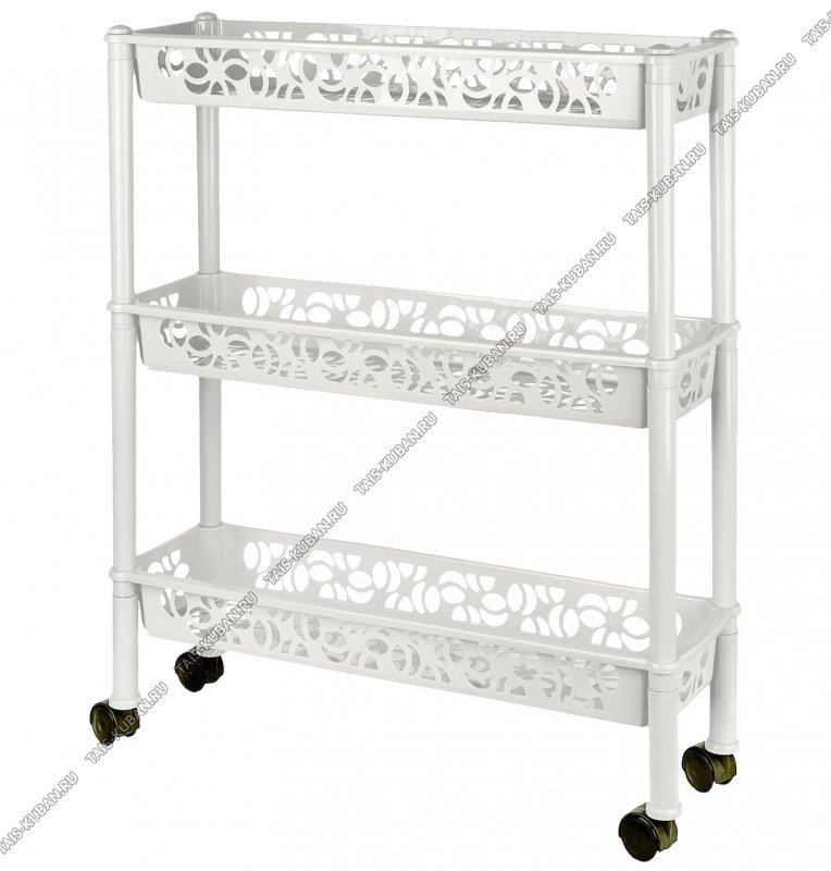 Этажерка "Prima" белый 3-х ярус,узкая,на колес,д/кухни,ванной,(58х18 h69см,глуб.лотка 6.5см) полки ажурные (12)