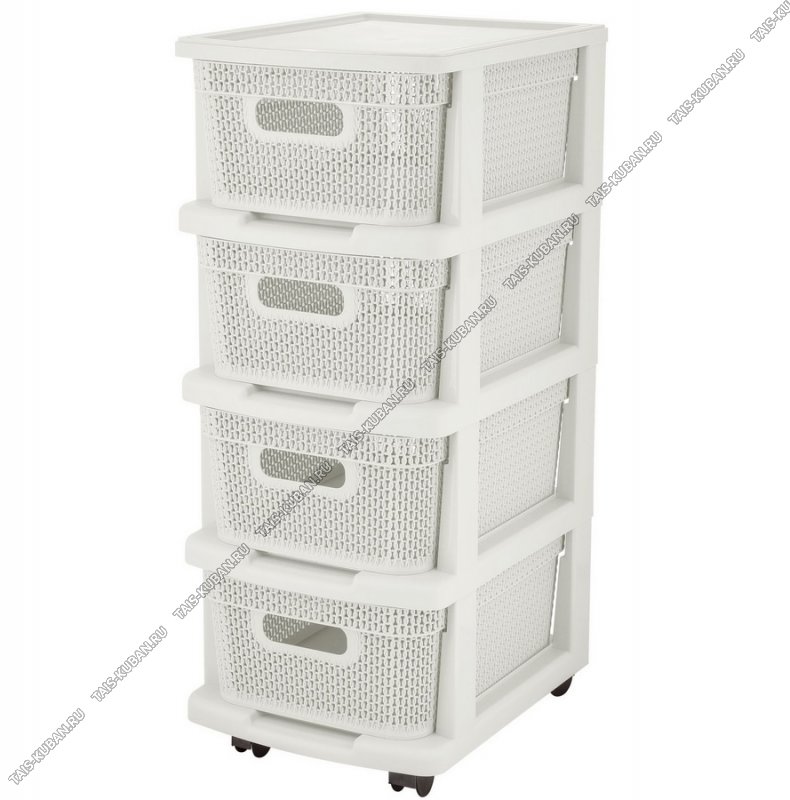 Комод "Плетение" 4-х секц,белый, узкий (37х30х69см) (1)