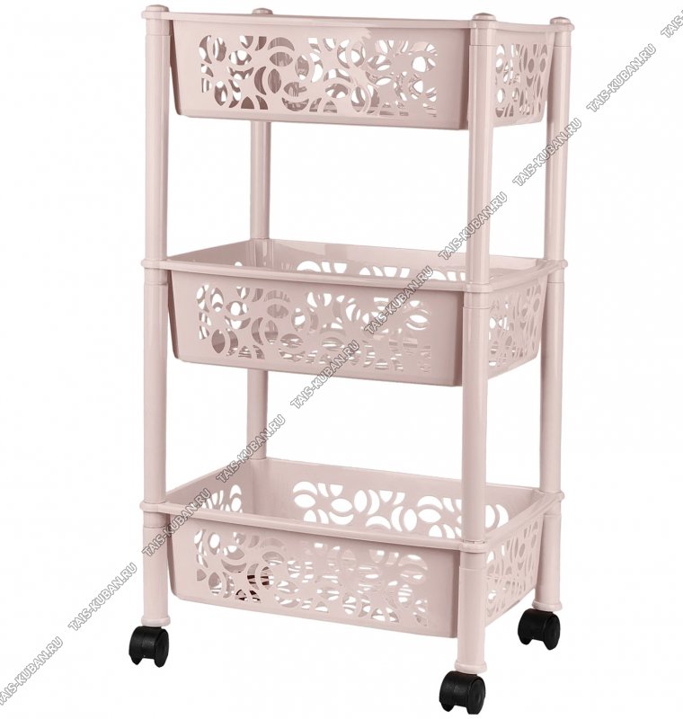 Этажерка "Prima" беж 3-х ярус, на колес,д/кухни,ванной (37х29 h69см,глуб.лотка 10см) полки ажурные (10)