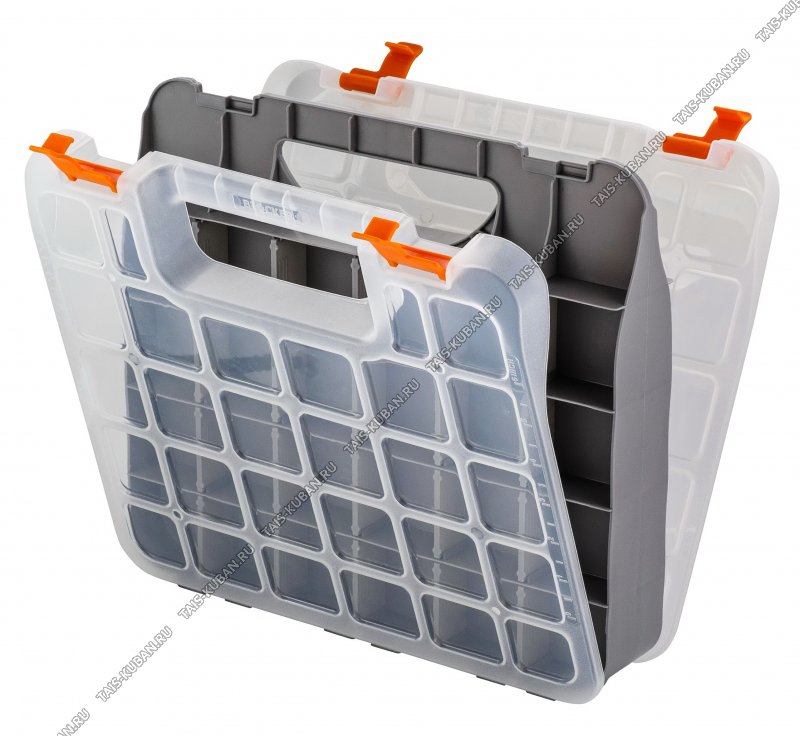 Органайзер для мелочей "Expert 13" 2-х сторонний, 60 ячеек, серо оранжевый (32х29,5 h6,5см) крышка на защелке (12)
