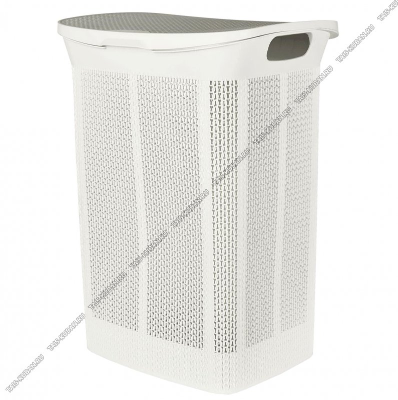Корзина д/белья 50л с крыш "Плетение" бел,прям (43х34 h59см) выруб.руч (2)