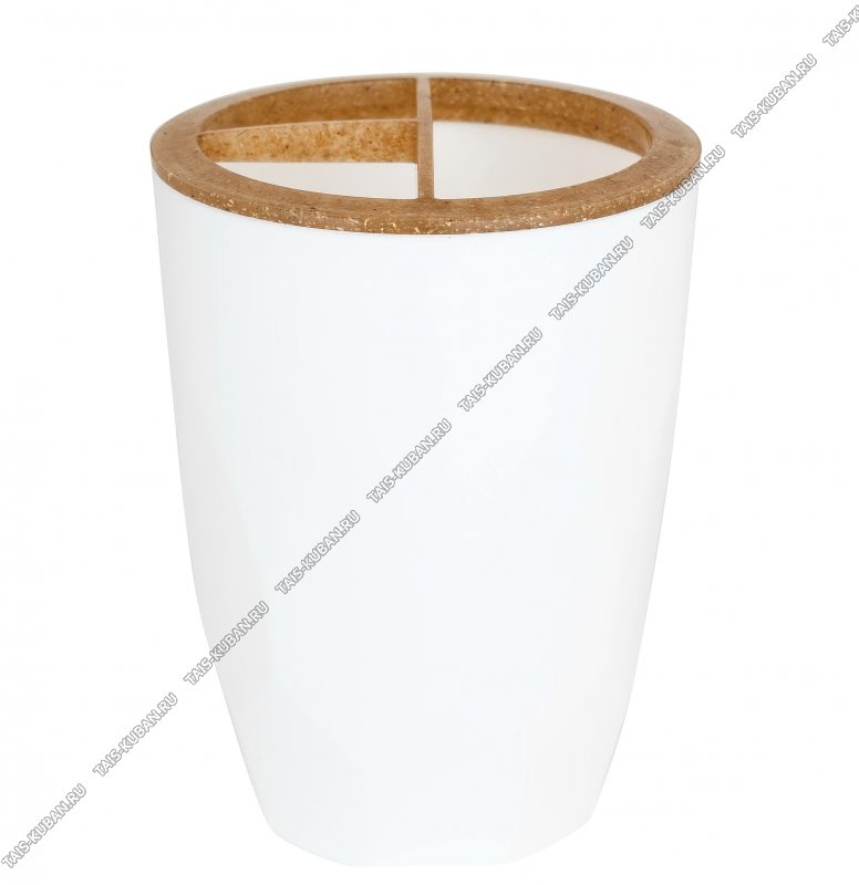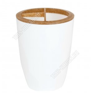 "Wood" белый+древес.композит Подставка д/зубн.принадлежн 3-х секц,круг (d7,5 h10,5см) (24)