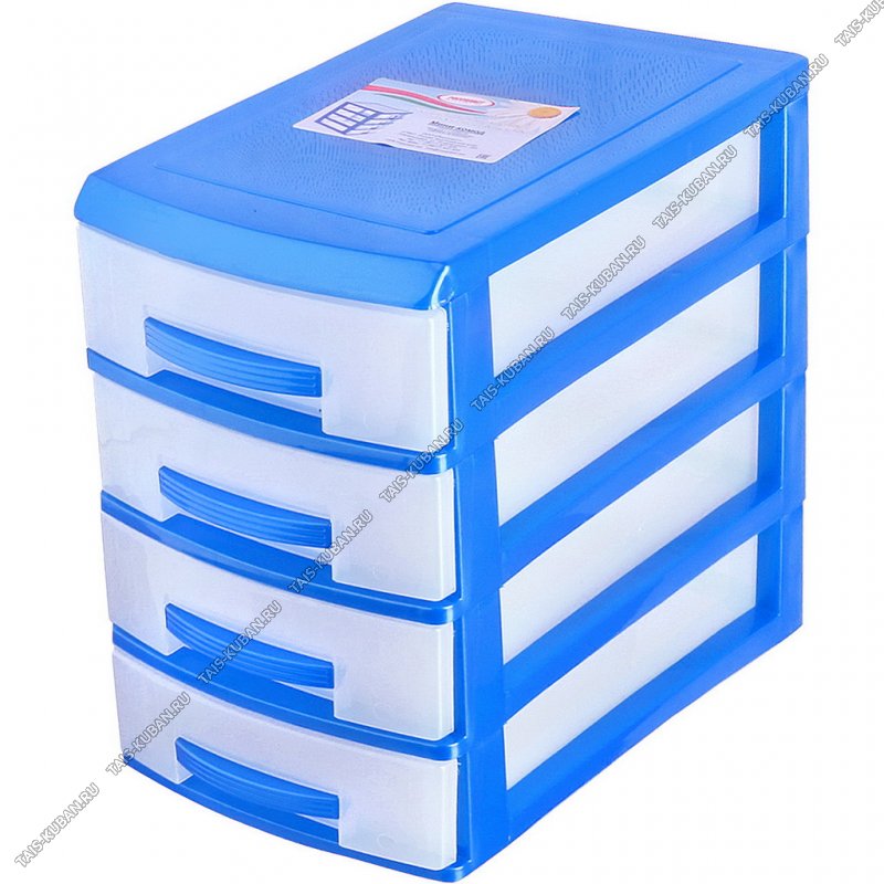 Бокс д/метизов,мелк.инструмента,голуб/прозр 4-х секц,(25х18 h26см) (6)
