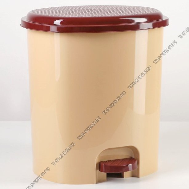 Ведро д/мусора с педал 12л овал, беж/коричневый (8)