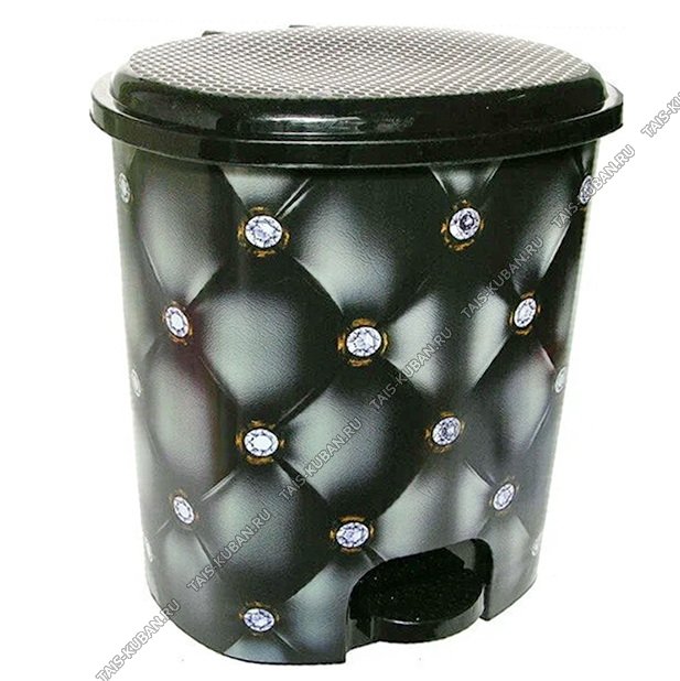Ведро д/мусора с педал. 12л овал, "Кожа" черн (29х24 h30см) внутр.съем.ведро (8).