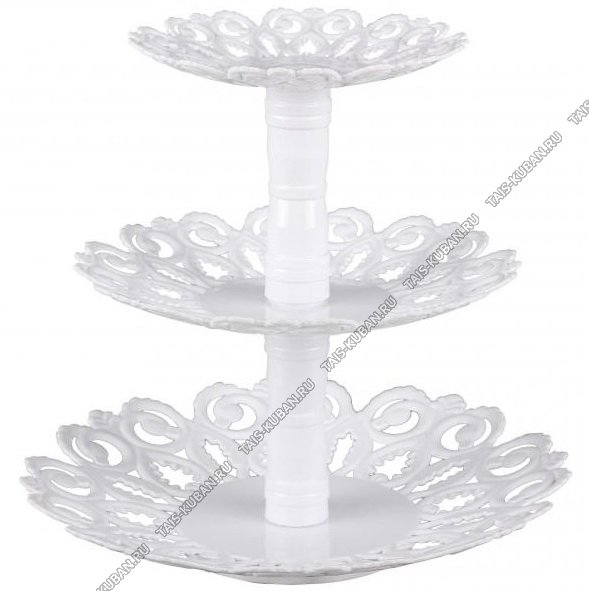 Фруктовница 3-х яр, кругл (d16/21/26 h24,5см) "Мелодия/Белый" резной узор (15)