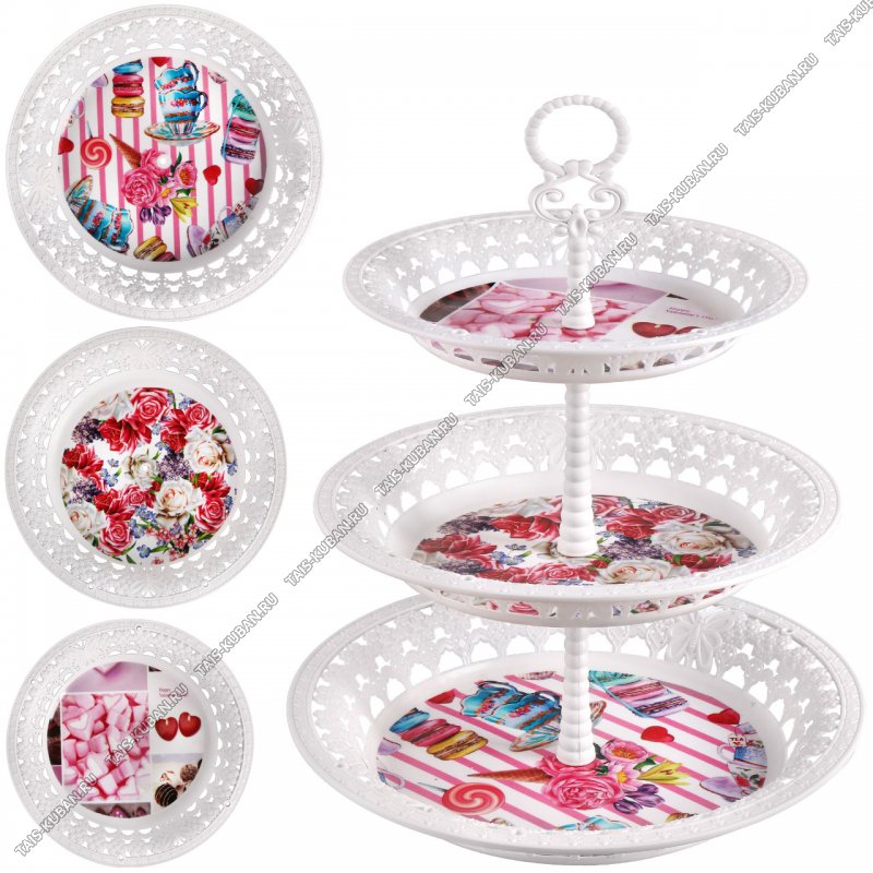 Фруктовница 3-х яр, кругл (d25/30 h33см) "Десерт и розы" (36)
