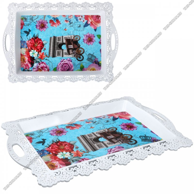 Поднос прям.(40,5х29 h3,5см) "Цветы" (120)