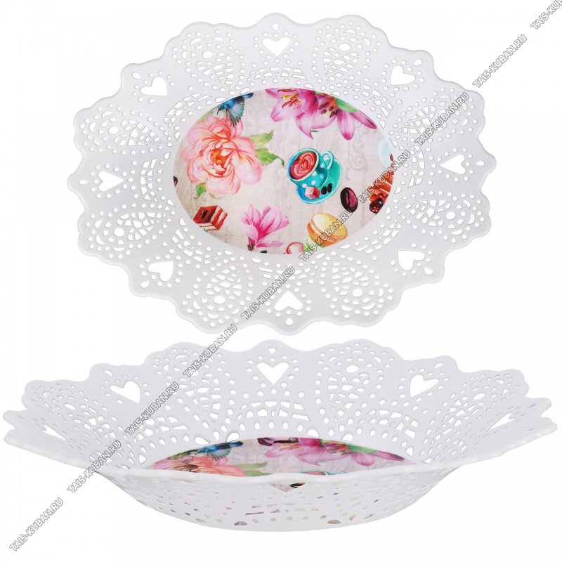 Ваза овал (38х28 h8см) "Магнолии,кофе" ажурн.борт,сливочн (80)