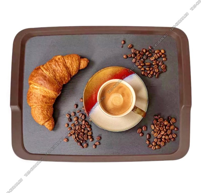Поднос прям.(42х32 h2см) Поднос прям.(42х32 h2см) "Утренний кофе", коричневый Бытпласт(14)
