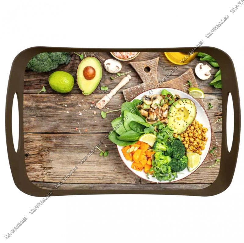 Поднос прям.(41х27 h5см) "Полезный завтрак" коричневый Бытпласт(14)