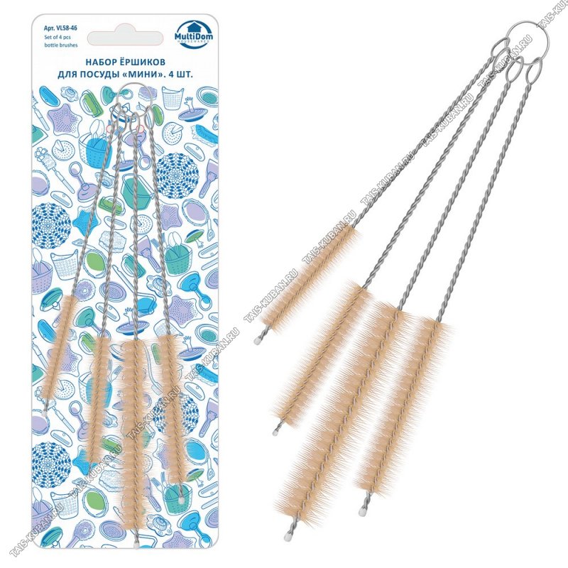 Ершик д/бутылок Н-р 4шт L20см d3см, раб.поверх.2,5/7,5/9/10см (12)
