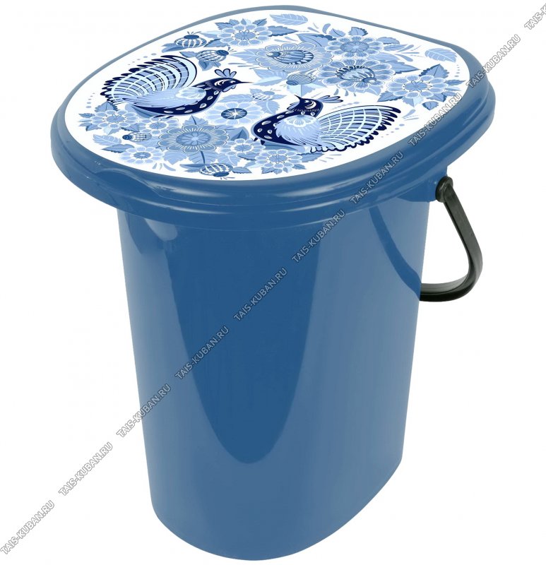 Ведро-туалет 20л нагруз.до 130кг, т.син/крыш.декор "гжель" (39х35 h42см) (6)
