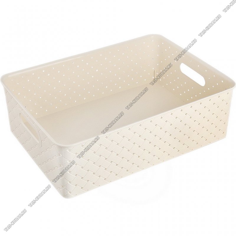 Корзина "Ремешки" без крышки,сливочный 7,5л,прямоугольная (35х24 h10см) вырубные ручки (14)