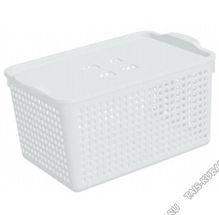 Корзинка "Лофт" бел, с крышк 5,3л,прям.(29х18 h14см) (11)