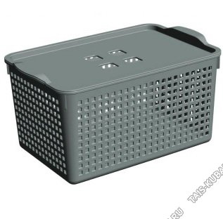 Корзинка "Лофт" графит, с крышк 5,3л,прям.(29х18 h14см) (11)