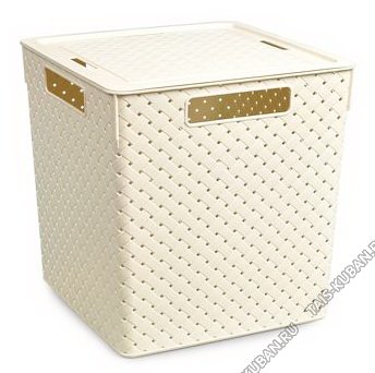 Корзина "Ремешки" с крышкой,сливочный 23л,квадрат (29х29 h30см) 4 вырубные ручки (9)