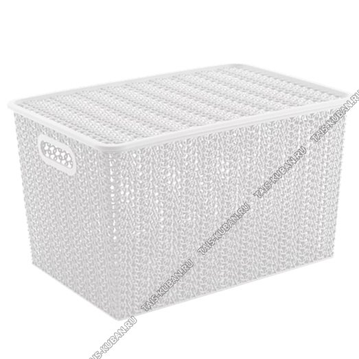 Корзина "Вязь" с крышкой,белый 14л (35х24 h20см) (12)