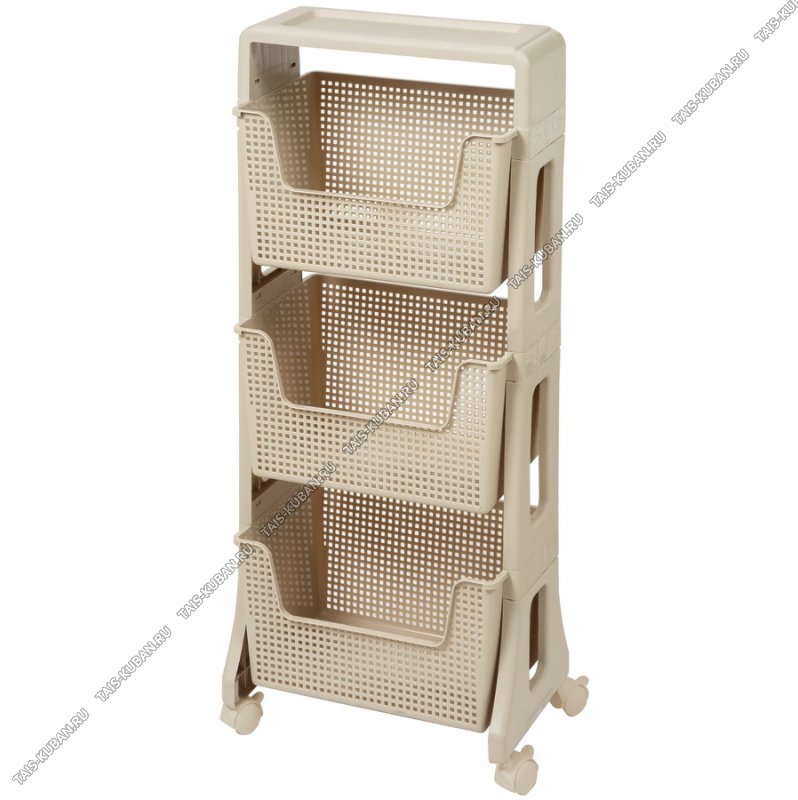 Корзинка "Лофт" латте, 3-х ярус,этажерка на стойке с колесик (39,5х26 h94см) (12)