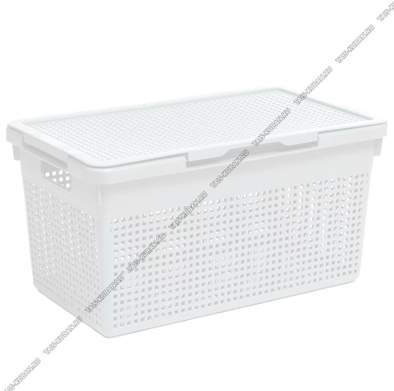 Корзинка "Лофт" бел, с крышк 21л,прям.(45х26 h24см) вырубные ручки (10)