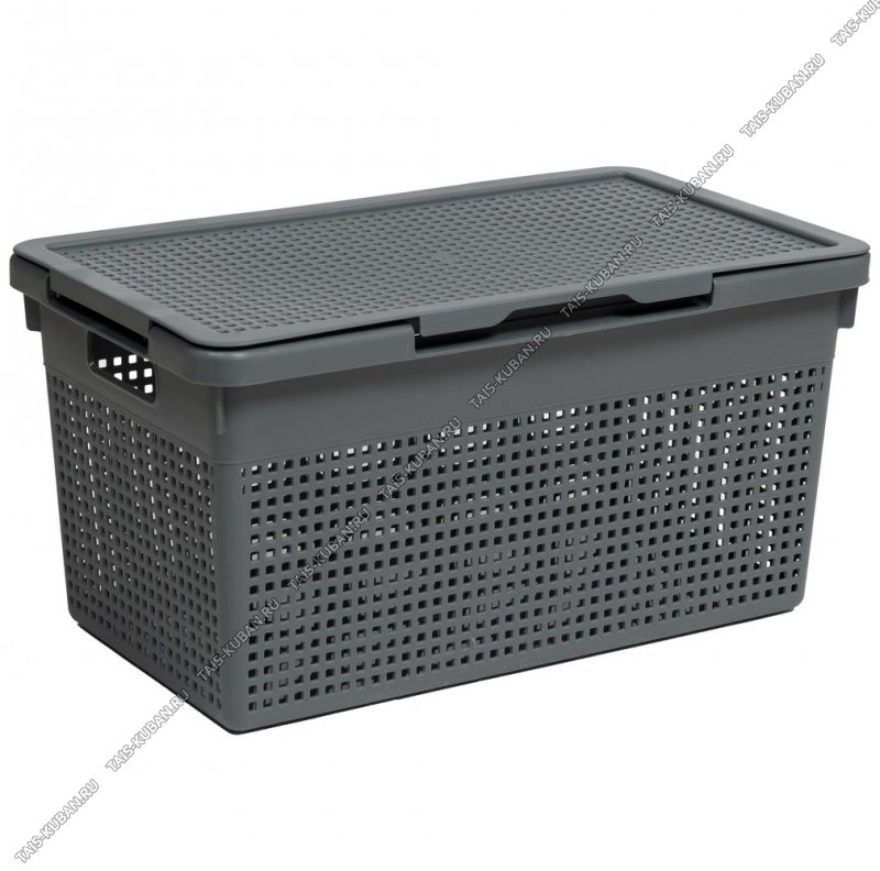 Корзинка "Лофт" графит, с крышк 21л,прям.(45х26 h24см) вырубн.руч.(10)