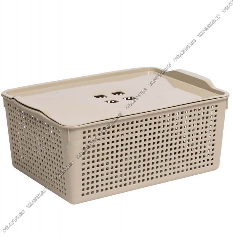 Корзинка "Лофт" латте, с крышк 13л,прям.(39,5х27 h16,5см) с руч.(11)