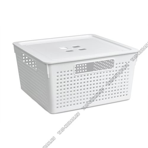 Корзинка "Лофт" бел, с крышк 11л,квадр.(29х29 h15см) 4 вырубные ручки (17)