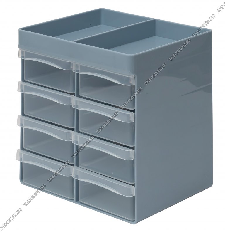 Органайзер д/мелочей 8 выдвижн.ящик, +2секции (19х16 h20см) серо-син/прозрач.(8)