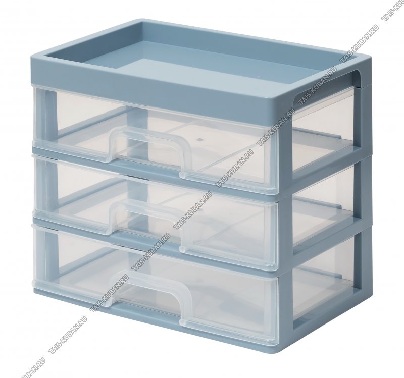 Органайзер д/мелочей 3 выдвижн.ящика, +1 секция (26х18 h22,5см) серо-син/прозрач (4)
