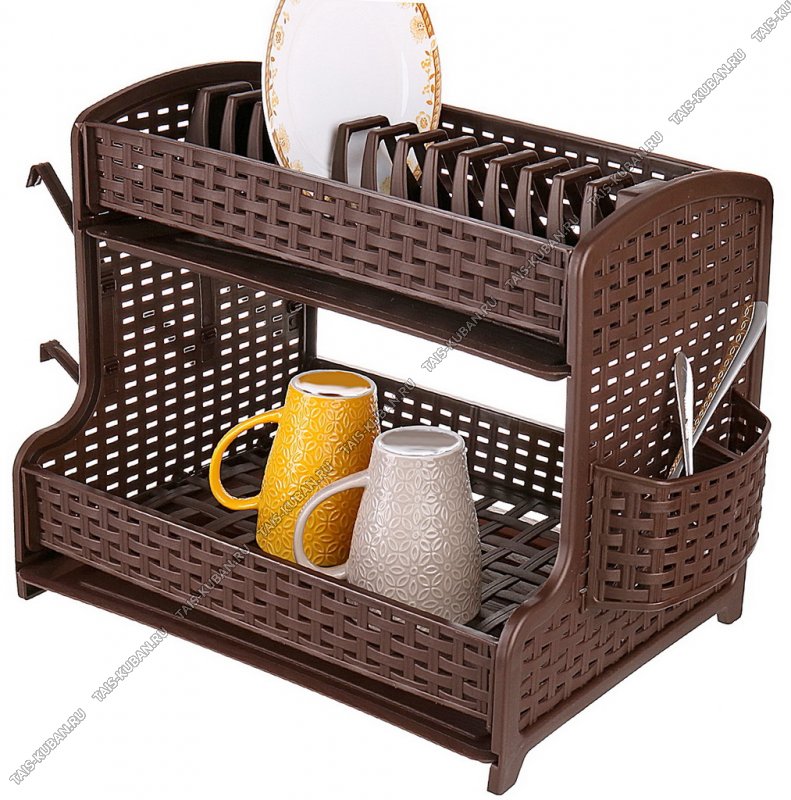 Сушилка д/посуды "Ротанг" коричн, на 14 тарелок 2-х яр.+2отд.д/ст.приб+2кр.д/круж,стак.(41х28 h32см) с поддон (6)