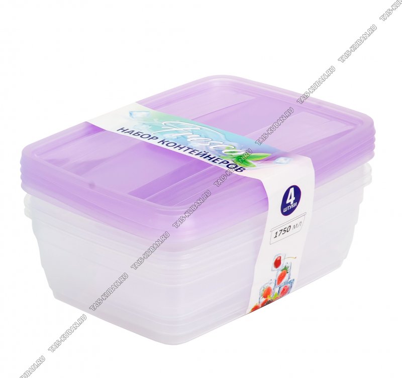 Контейнер "Fresco"н-р 4шт по 1,75л крыш.лаванда, прям.(22х16 h11см) (6)