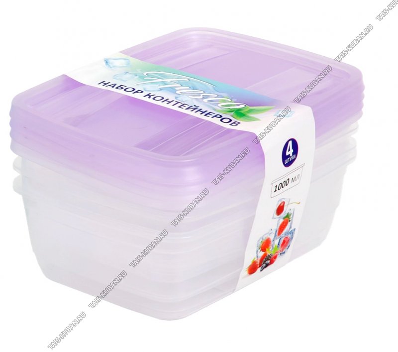 Контейнер "Fresco"н-р 4шт по 1,0л крыш.лаванда, прям.(19х14 h9см) (9)