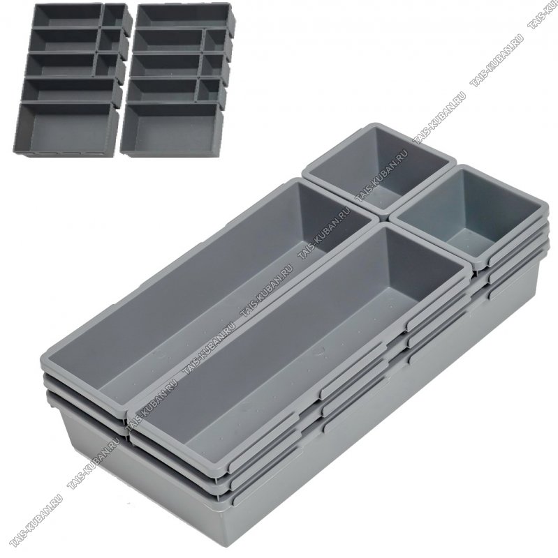 Лоток-вклад д/хранен 8-ми секц (сборн) "Комбо2" графит (1шт*32х16см/ 1шт*32х8см/ 3шт*24х8см/ 3шт*8х8см h5см) крепятся друг к другу (12)