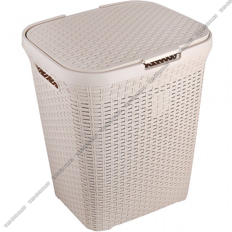 Корзина д/белья 60л Корзина д/белья 60л "Ротанг" сливочн,с крышк, прям (44х35 h56см) (8)
