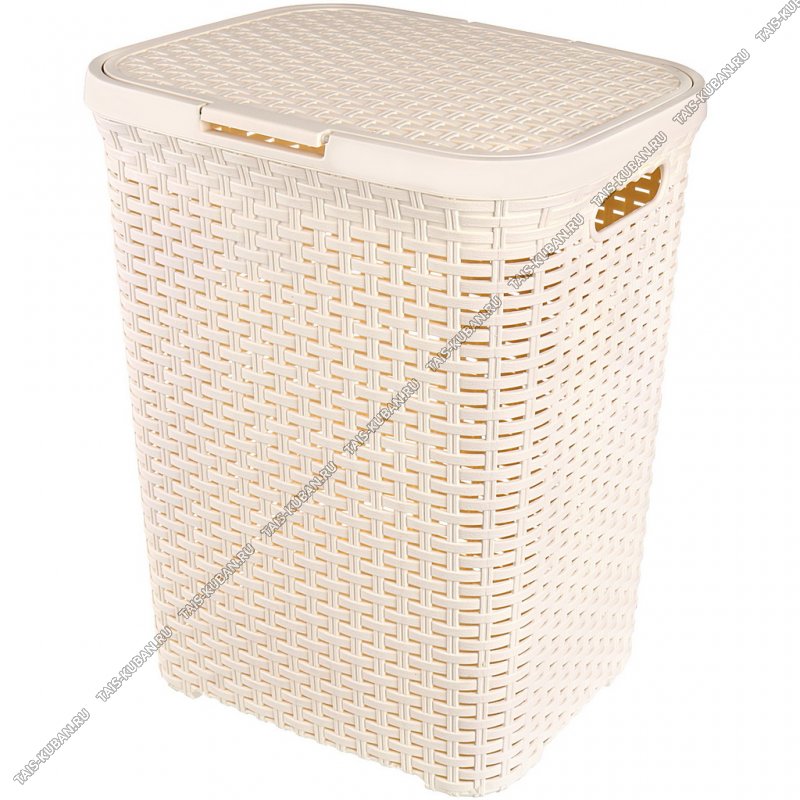 Корзина д/белья 60л "Ротанг" сливочн,с крышк, прям (44х35 h56см) (8)
