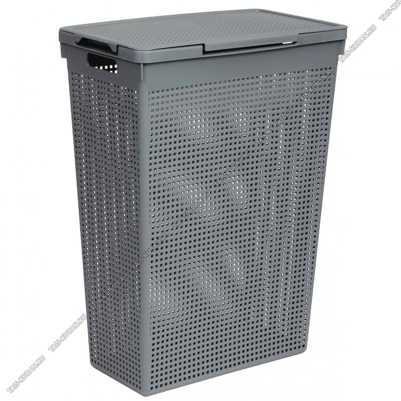 Корзина д/белья 60л "Лофт" серый,с крышк, узкая (45х26 h62см) выруб.руч. (10)