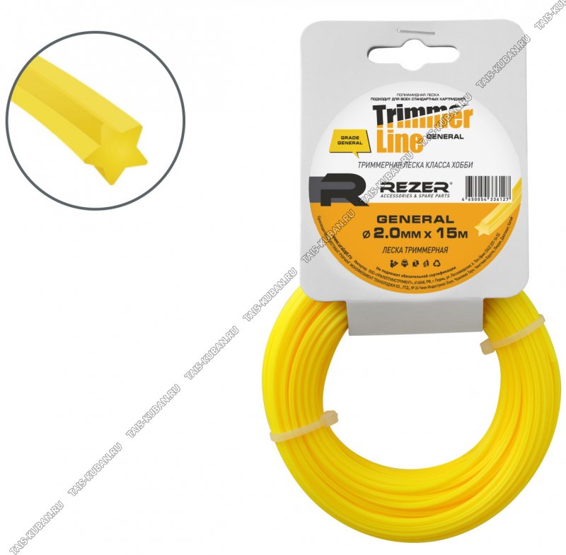 Леска REZER Леска REZER"General" в бухте- д/триммера, звезда d2,0мм L170м, желтый